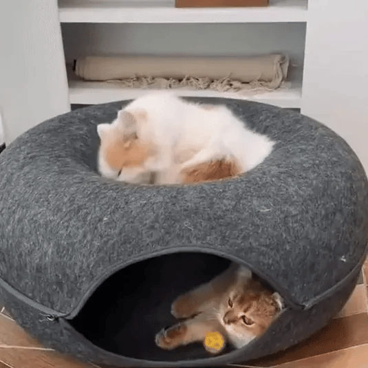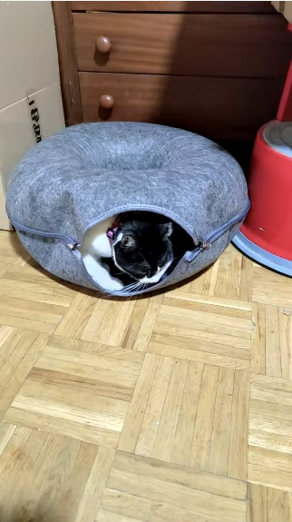 La forma de dona y los materiales suaves envuelven a tu gato en un abrazo cálido, ofreciéndole un lugar perfecto para descansar y sentirse seguro 😺
