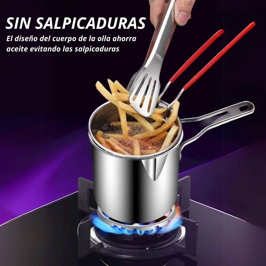 Su diseño incluye un filtro de aceite desmontable que facilita el drenaje, eliminando el desorden en tu cocina después de freír🧹✨