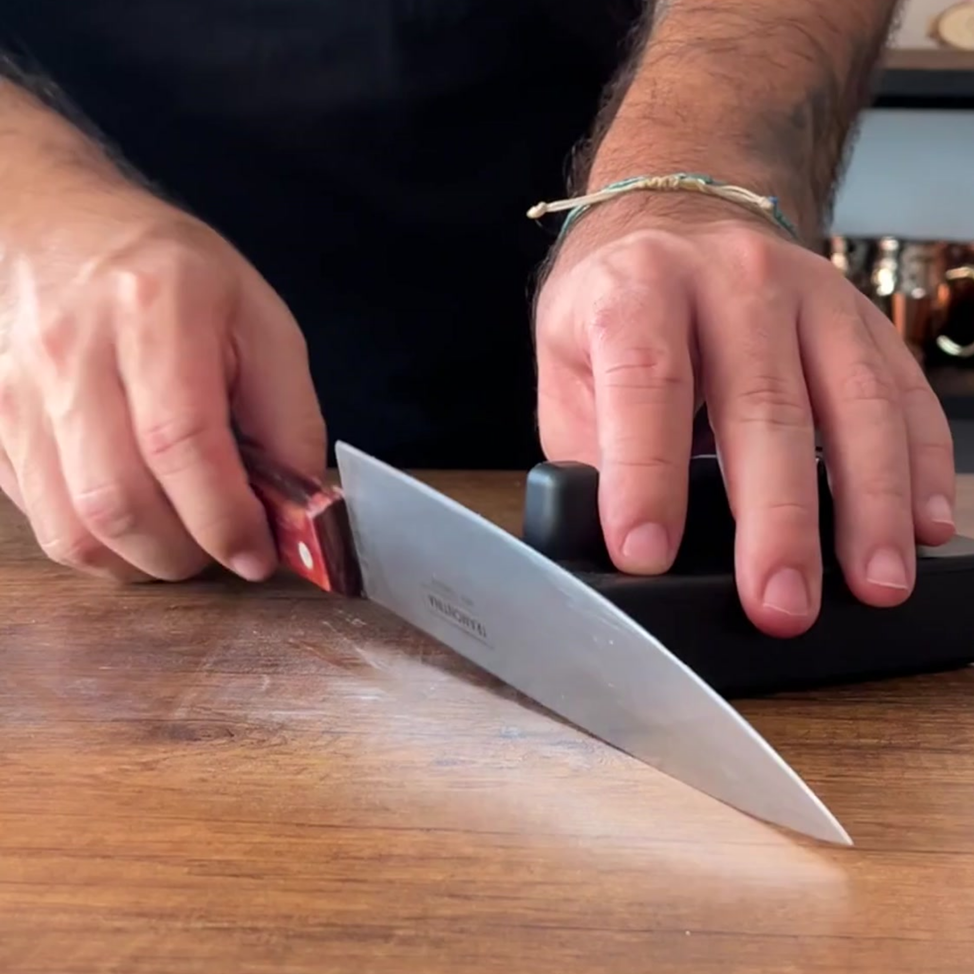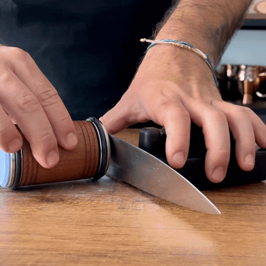 Las piedras de afilar consiguen un filo preciso, pero requieren tiempo y habilidad para dominarlas. TOGI combina la precisión de una piedra con la facilidad de ángulos preestablecidos, ofreciendo un acabado profesional en minutos.