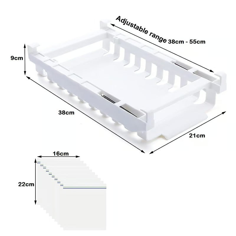 El Organizador de Bolsas Ziploc es un accesorio imprescindible para cualquier fanático del orden. 🏠 Este organizador es duradero y resistente, y logra que tus bolsas Ziploc estén siempre al alcance y perfectamente alineadas, tal y como te gusta. 😋