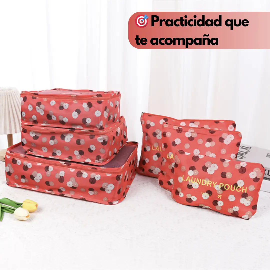 Con 6 piezas diseñadas específicamente para diferentes tipos de ropa y accesorios, tendrás todo perfectamente separado y a la mano. ¡Viajar nunca fue tan sencillo!