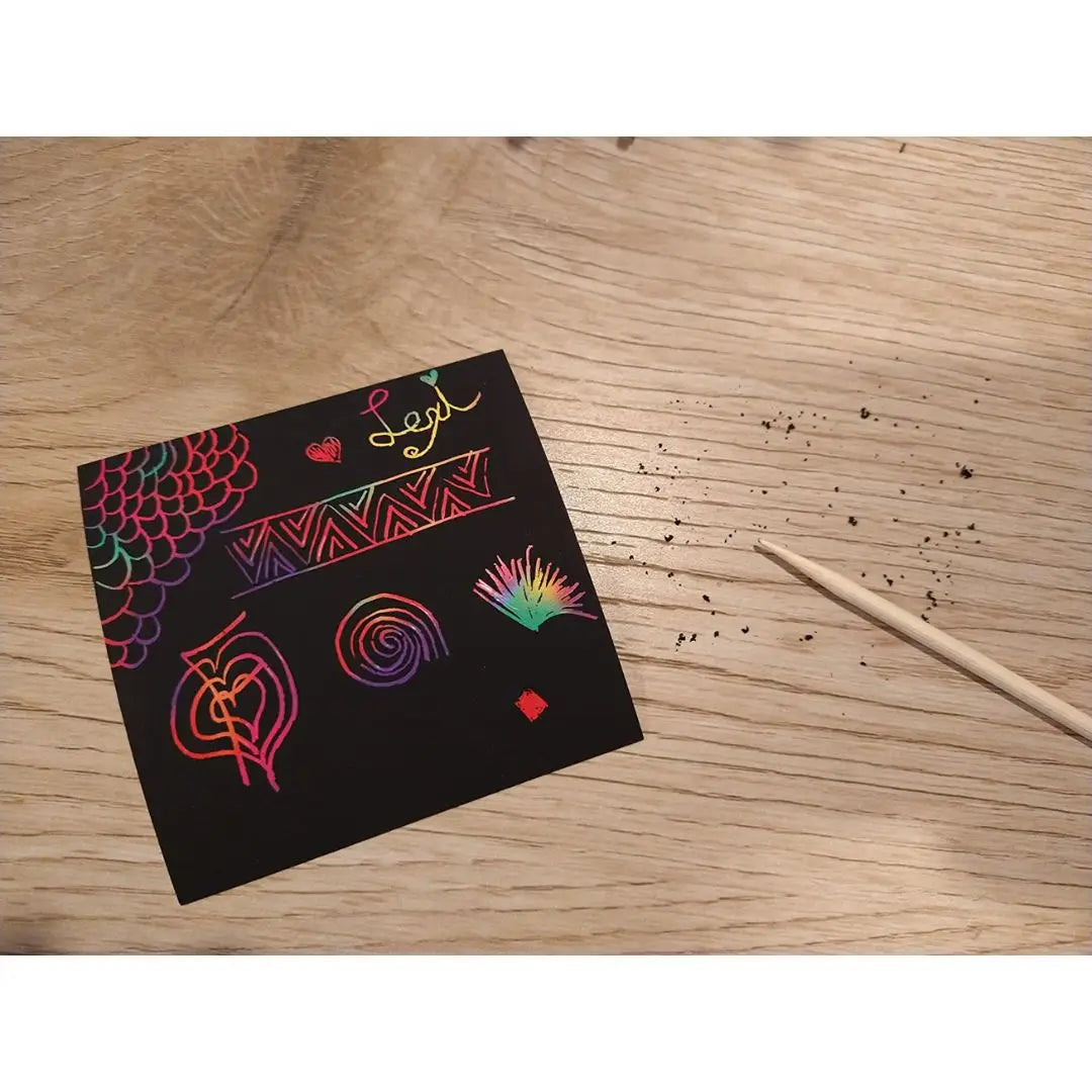 Cada rasguño revela un fondo de arcoíris vibrante, ¡perfecto para hacer arte único y sorprendente!