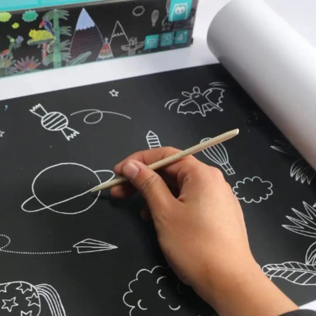 Este increíble rollo de raspar no solo ofrece horas de diversión, sino que también ayuda a tus hijos a desarrollar su talento artístico