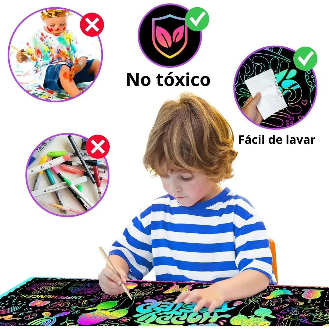 El Rollo Mágico Niños está diseñado pensando en la seguridad de los más pequeños. Sus materiales son 100% libres de tóxicos, lo que garantiza que puedan usarlo sin riesgos