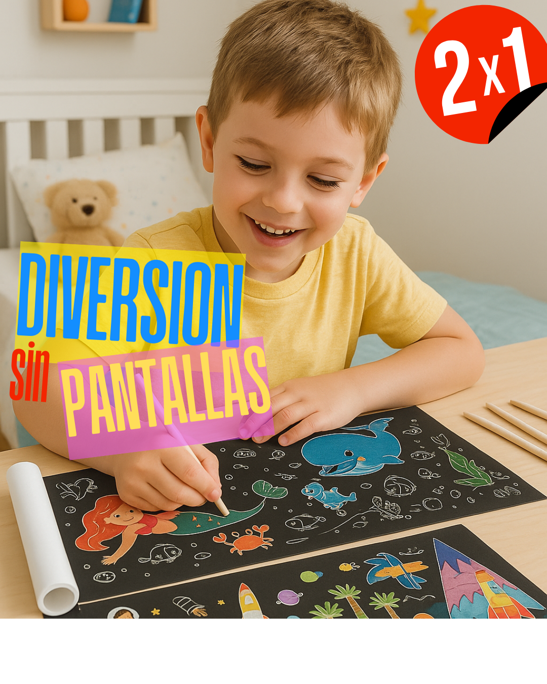 2 X 1 - MAGIC SCRATCH - Rollo Papel Mágico Raspar Dibujos 2 Mts